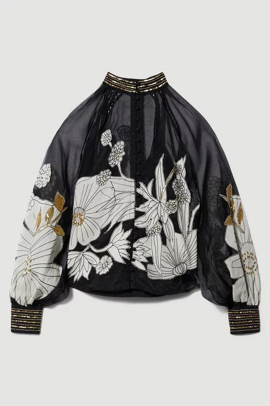 - Neckline: Collared