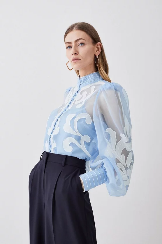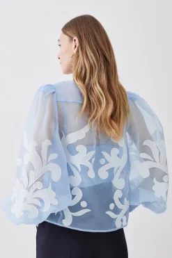 Best reviews of π Karen Millen Ponte And Mesh Rouched Organza Frill Bardot Top – chocolate βοΈ