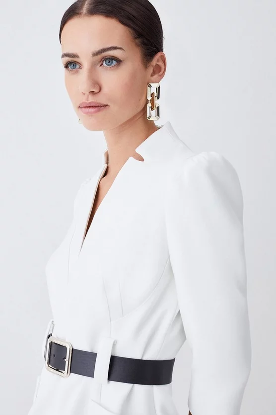 Outlet πŸ˜‰ Karen Millen Petite Compact Stretch Belted Forever Belted Midi πŸ‘— Dress – ivory πŸŽ‰