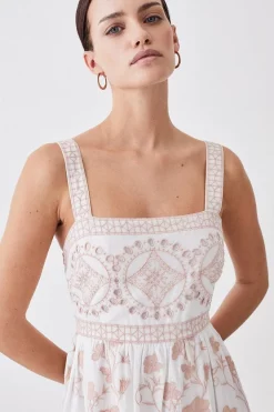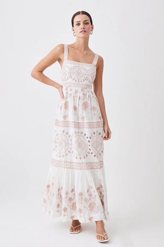 Promo β¨ Karen Millen Metallic Guipure Lace Pleated π Skirt Midi π Dress – ivory π₯°