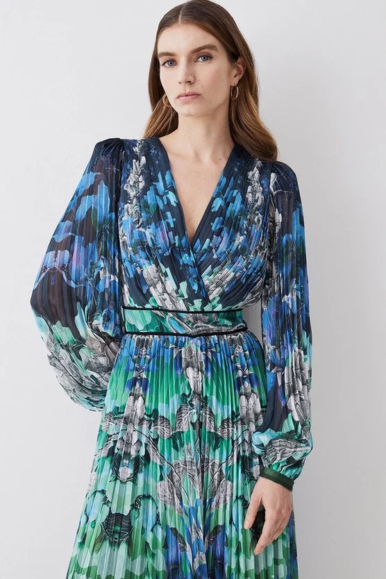 Hot Sale π€© Karen Millen Tall Mirrored Ombre Floral Pleat Drama Woven Midi π Dress – blue π₯