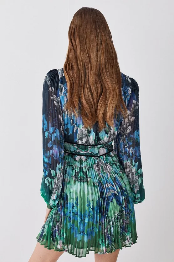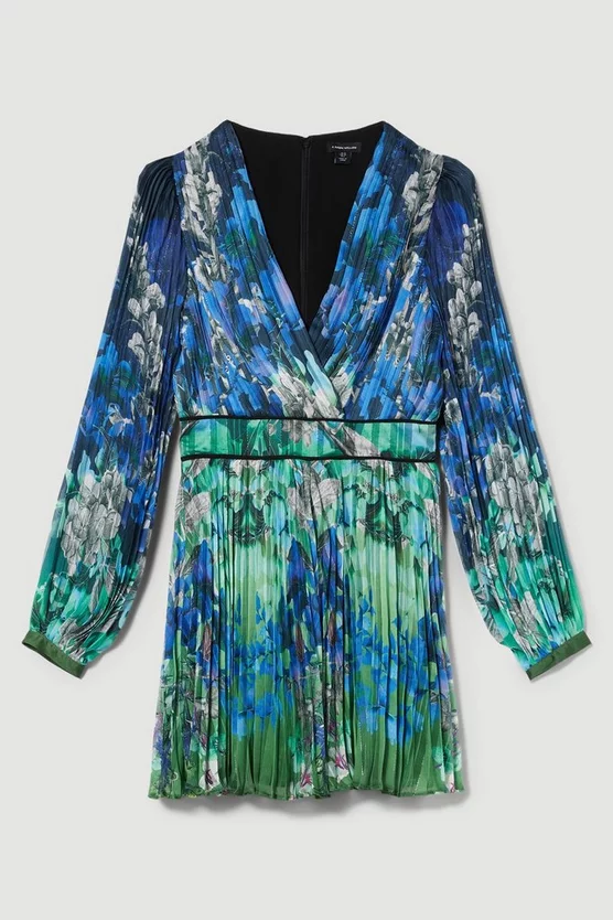 Hot Sale π€© Karen Millen Tall Mirrored Ombre Floral Pleat Drama Woven Midi π Dress – blue π₯