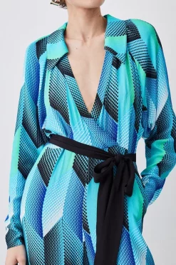 Hot Sale π₯ Karen Millen Geo Print Belted Woven Jumpsuit – blue π