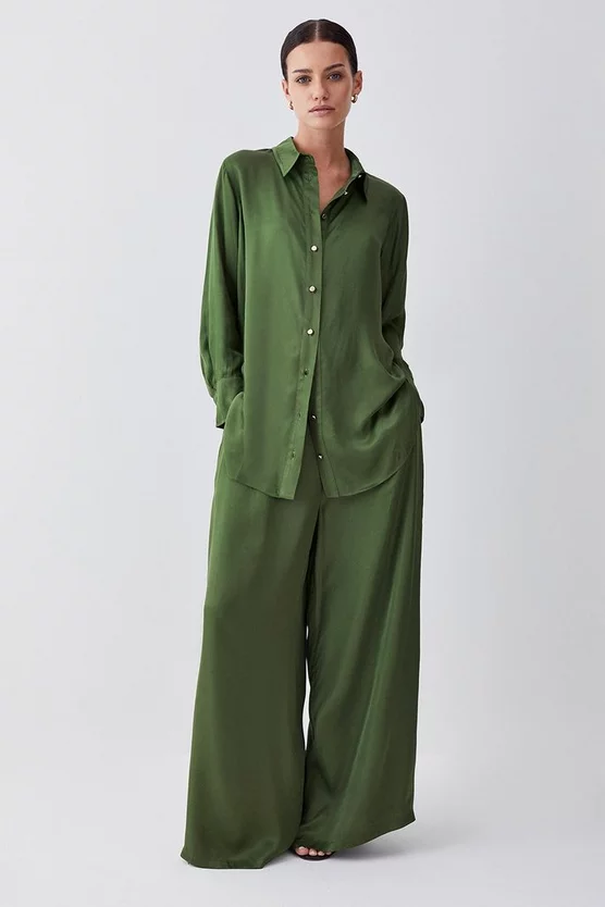 100% Viscose. Gentle machine wash at 30 with similar colours. Model wears a UK 8/US Size 6.