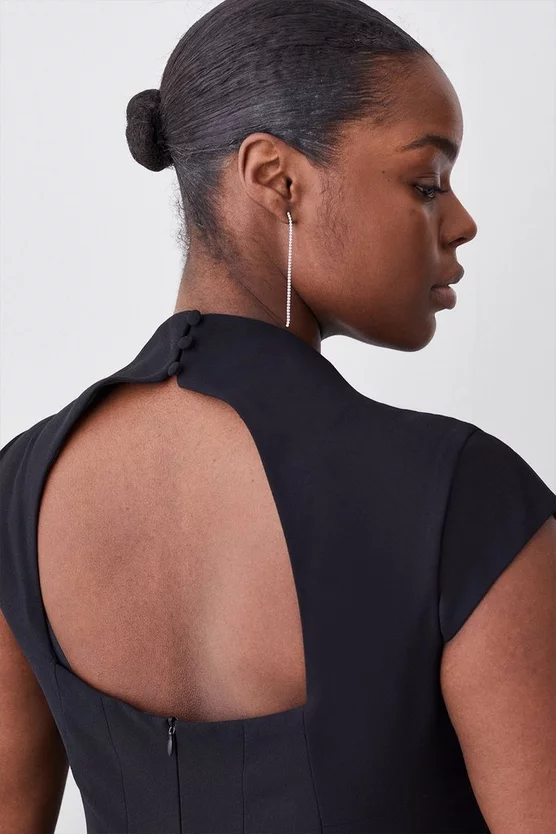 Main: 100% Polyester. Lining: 100% Polyester. Dry clean only. Model height: 5″9. Length measurement: 88cm.