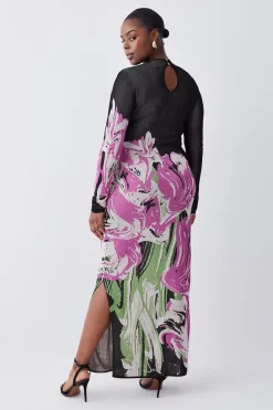 Enhanced in a bold optical print, this maxi dress exudes a contemporary aesthetic. Crafted with a jacquard knit, this dress subtly skims the form without feeling restricting. A side leg slit adds a sultry element, allowing the piece to be dressed up or down with ease.
