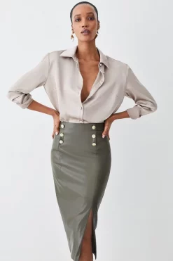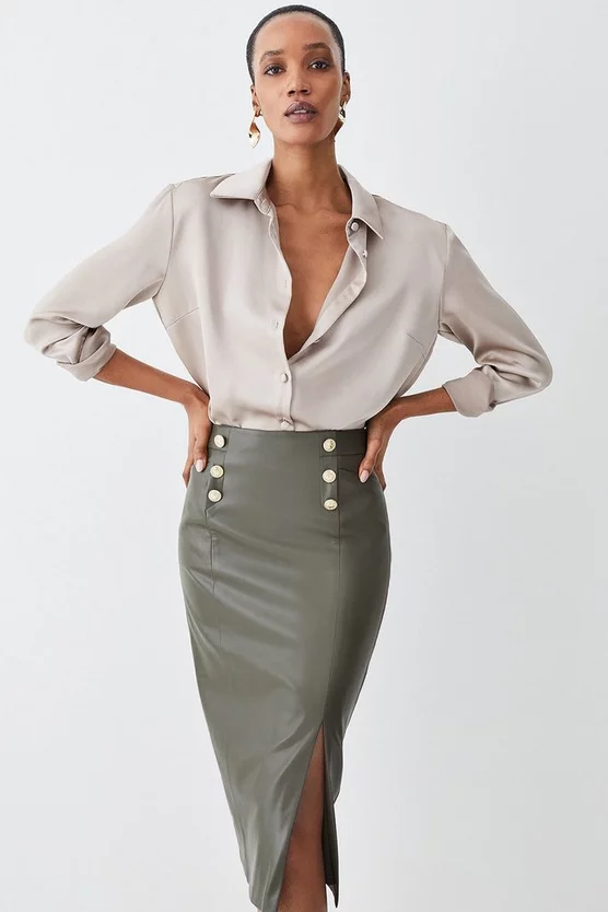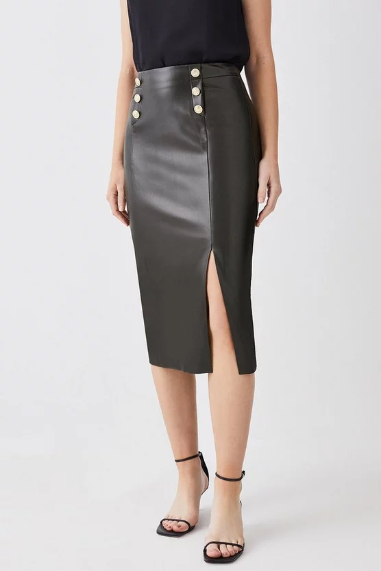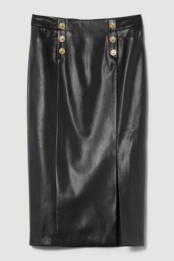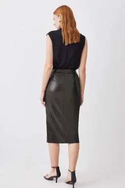 Top 10 π€© Karen Millen Leather Contrast Panels Belted Midi Trench π§₯ Coat – black π