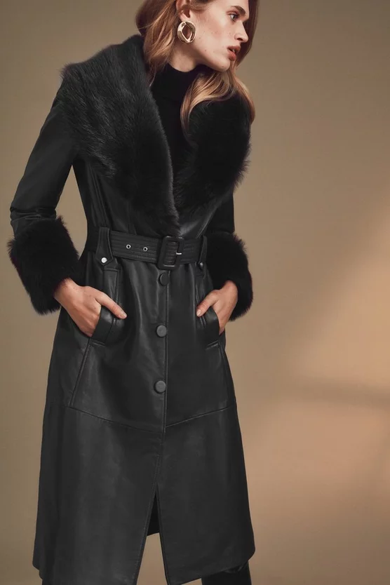 Main 100% Responsibly Sourced Lamb Leather. Lining: 100% Polyester. Specialist Leather Clean Only. Model wears UK 8/US 4. Model Height 5″10. Centre Back Length: 118cm.