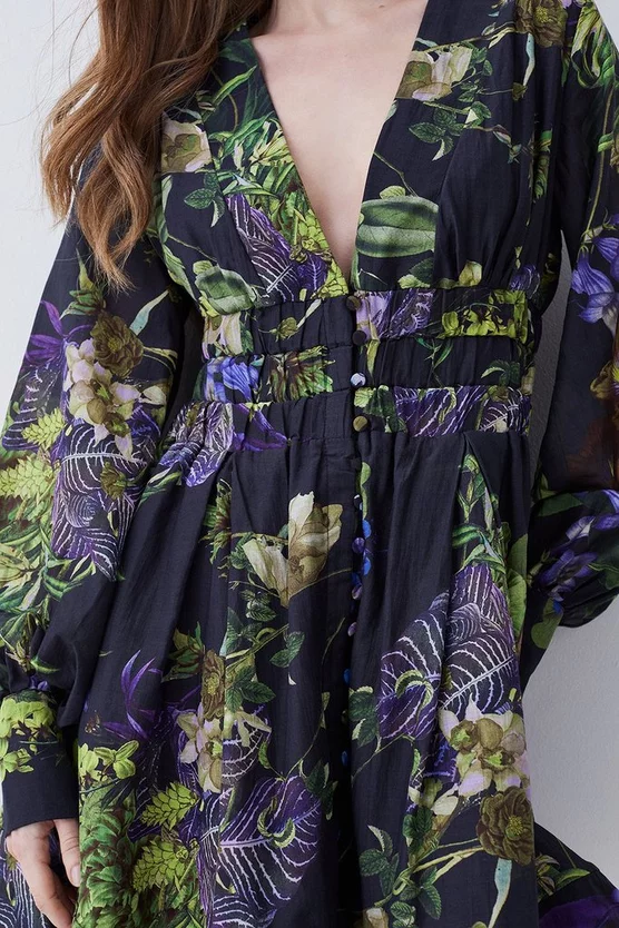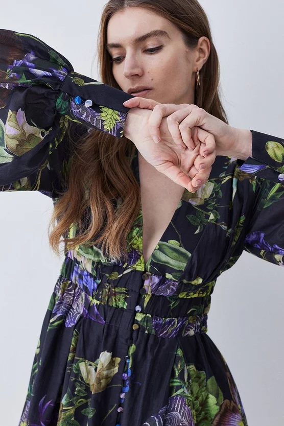 Hot Sale π₯° Karen Millen Lydia Millen Border Cotton Sateen Woven Midi π Dress – floral βοΈ