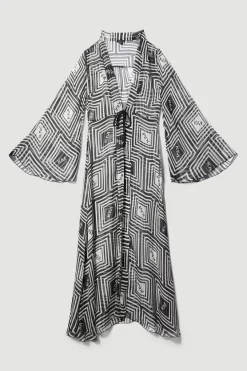 Hot Sale π₯° Karen Millen Lydia Millen Border Cotton Sateen Woven Midi π Dress – floral βοΈ