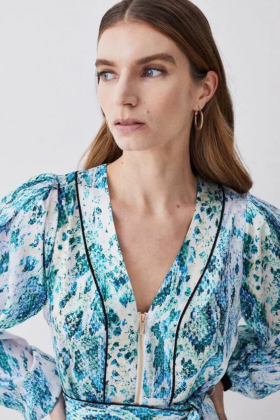 100% polyester. Gentle machine wash at 30 with similar colours. Model Height 5”10 – Model wears a UK 8/US Size 6. Centre back length of a 10: 90cm