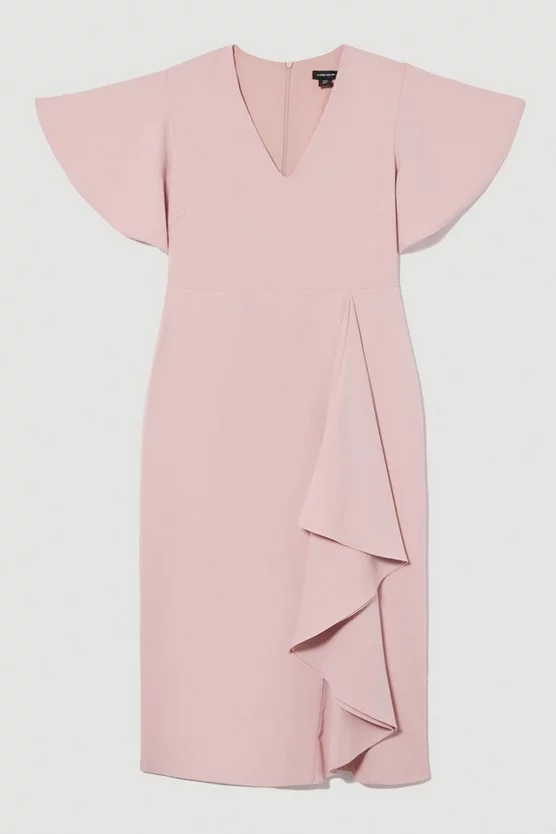 Cheap π Karen Millen Compact Stretch Viscose Drape Detail Pencil Midi π Dress – blush π―