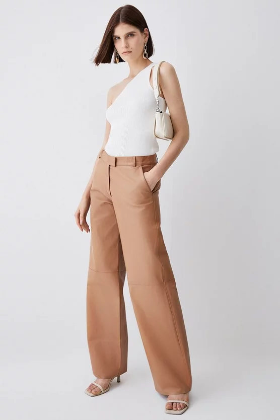 Main: 100% Responsibly Sourced Lamb Leather. Lining: 100% Polyester. Specialist leather clean only. Model wears UK 8/US 4. Model height: 5″9. Inner Leg Length measurement: 97cm.