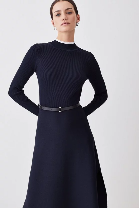 Promo π Karen Millen Plus Size Military Trim A-line Bandage Knit Mini π Dress – navy π