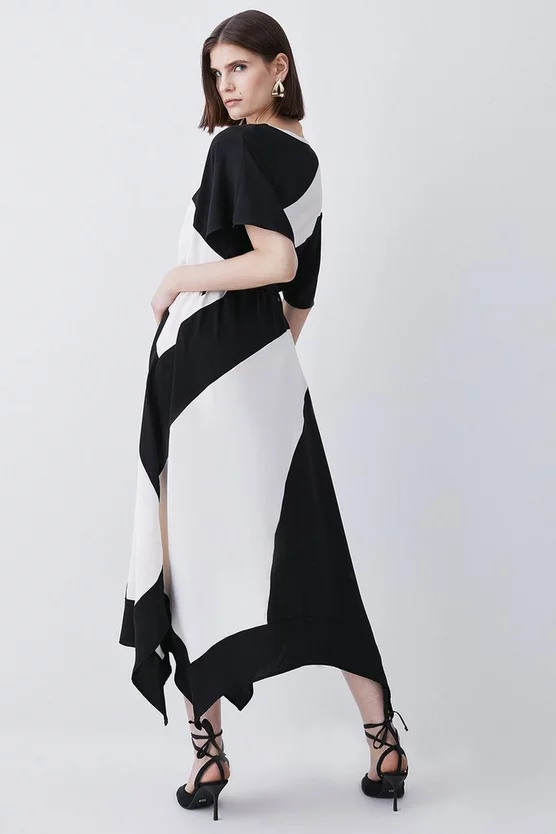 Cheap 𧨠Karen Millen Petite Guipure Lace Dot Pleated π Skirt Midi π Dress – mono π