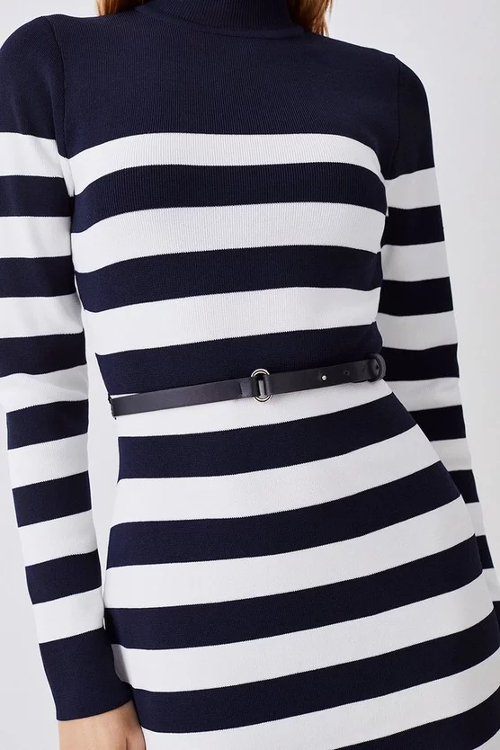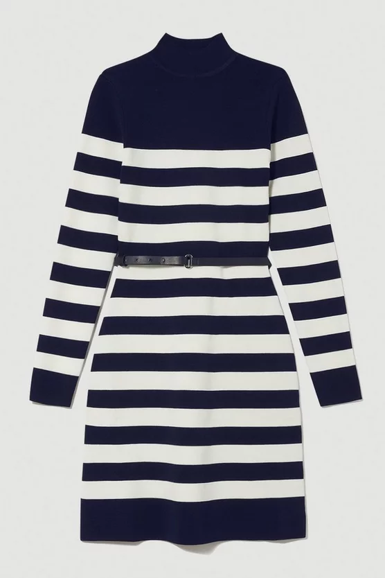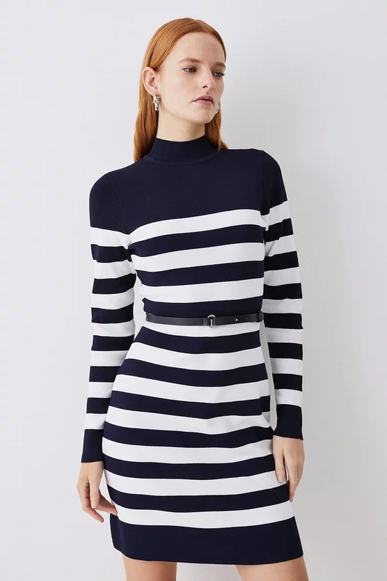 Top 10 ๐ Karen Millen Petite Stripe Rib Knit Belted Mini ๐ Dress ๐ฏ