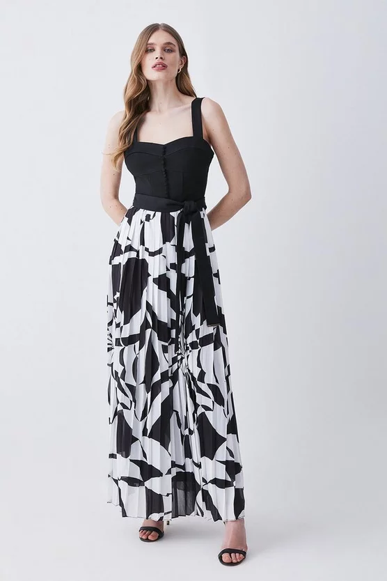 Cheap 𧨠Karen Millen Petite Guipure Lace Dot Pleated π Skirt Midi π Dress – mono π