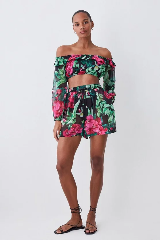 100% polyester. Gentle machine wash at 30 with similar colours. Model Height 5”10 – Model wears a UK 8/US Size 6.