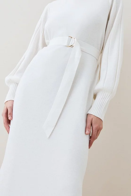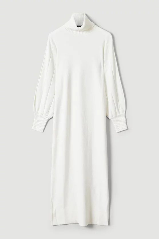 Adorned with a funnel neck and a matching belt, this knitted maxi dress is the perfect upgrade for your knitwear game. Keep it casual by pairing it with flats or opt for knee-high boots for a sophisticated look.