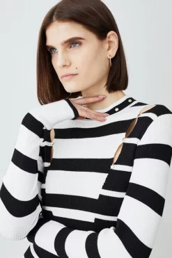Best Sale π Karen Millen Viscose Blend Soft Touch Stripe Knit Midi π Dress – mono π€©